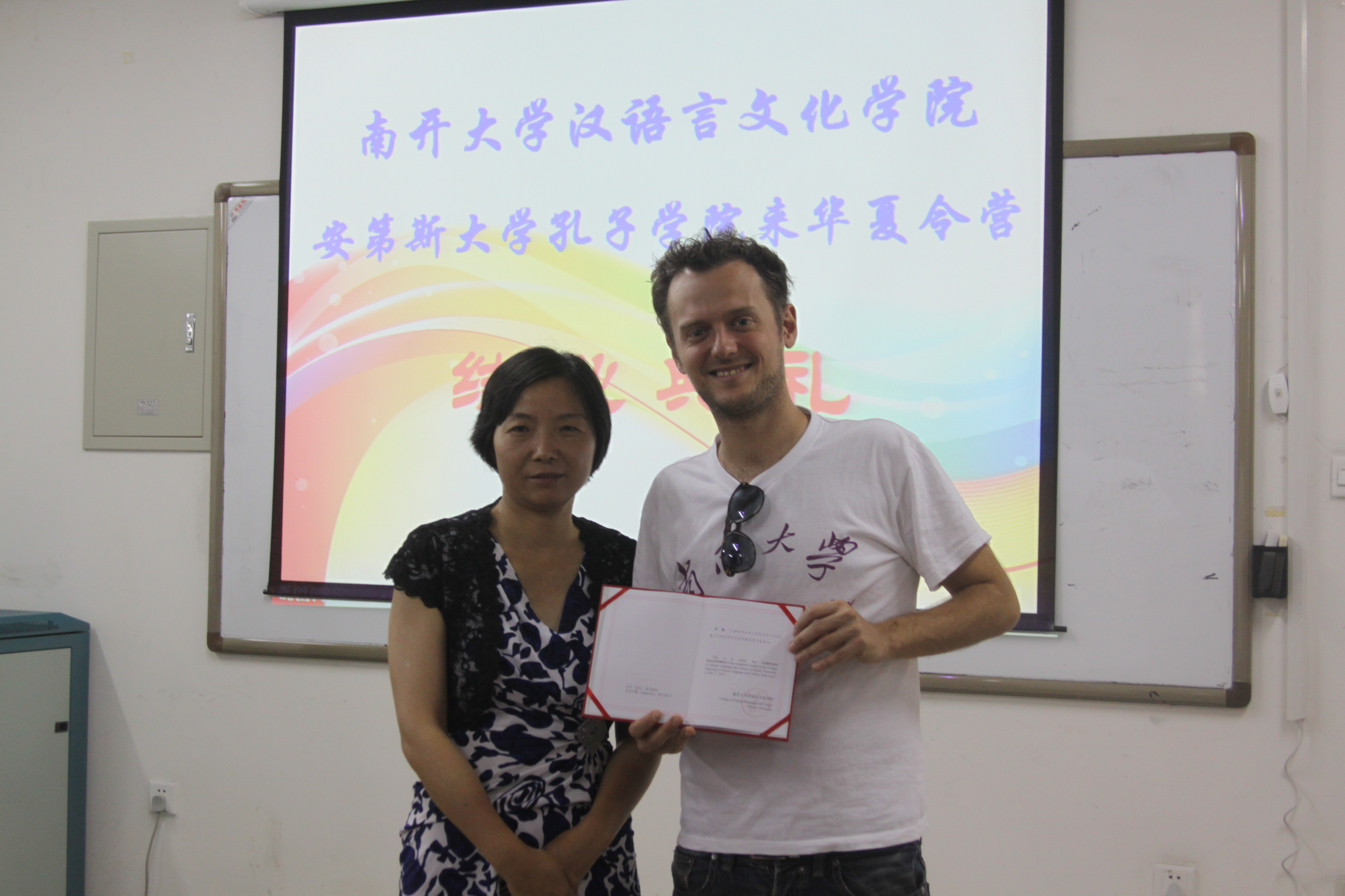 贝理研作为学生代表发言。他用中文分享了自己三周的学习、生活经历,并表示在南开大学留学让自己学到了很多,今后如果有机会希望再回南开,再来中国。
