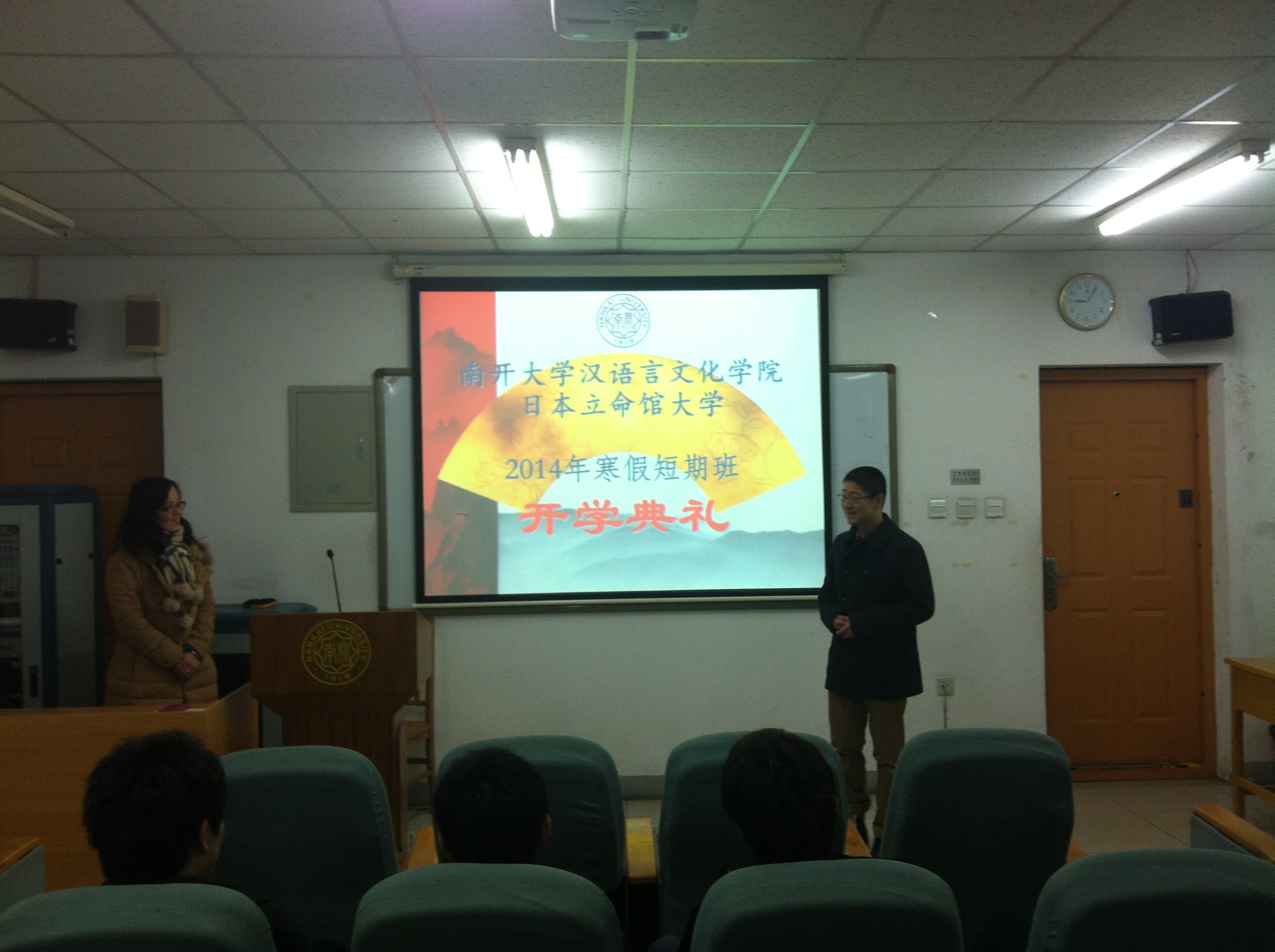 教学办公室主任任向青、短期班任课教师窦雪及招生办公室的相关负责人出席,来自日本立命馆大学的10留学生参加开学典礼。